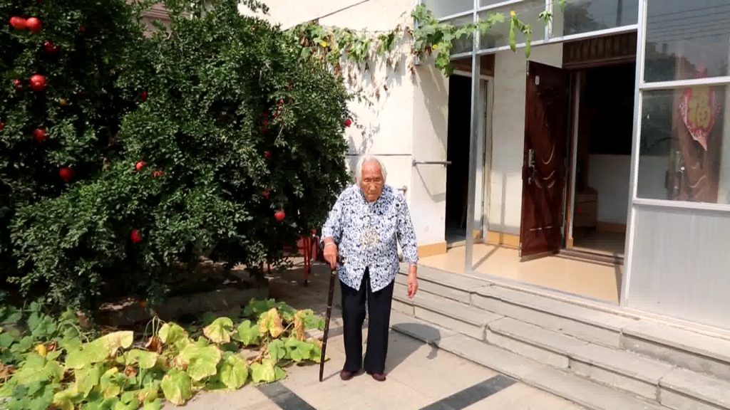 东明县城一个宽敞的庭院内,榴树上的石榴又红又大,葡萄开始落叶、还有丝瓜、韭菜等蔬菜,赵福云正在院里忙着手里的家务活。老人个子不高,裹着小脚,身材弱小但挺直而硬朗,清瘦的脸庞写满了岁月的痕迹。
